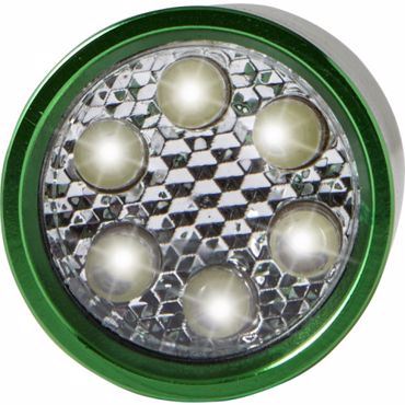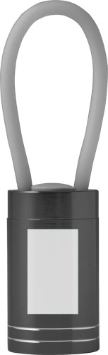 Porte-clés en aluminium munie de 6 LEDS avec anneau en silicone, piles incluses.