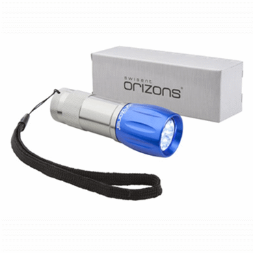 Torche de poche en aluminium avec 9 Leds et une dragonne. 3 piles AAA non fournies. Produit Orizons.