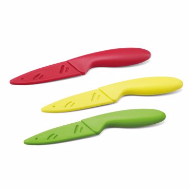 Couteau de cuisine en acier inox et plastique avec surface anti-adhésive et protection en plastique pour la lame. 190 x 20 x 25 mm, lame 8 cm