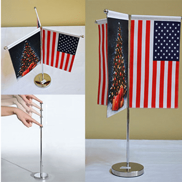 TRIPLE Drapeau de table ajustable-Decouvrez les Desk Wing Flags, Banner Flags et Drapeaux telescoptiques. Ces petites voiles sont parfaites pour attirer l'attention ou in n'y a pas beaucoup d'espace publiciaire disponnible. ils prennent tres peut d'espace et sont ideales pour comptoirs, caissons de presentation, salons, bureaux, conferences, point de vente, reception. La pluspart peut etre imprimes une face ou double faces. Faciles a installer et tres stables.