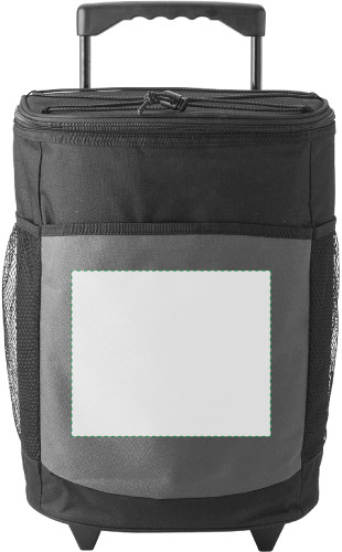 Chariot isotherme en polyester 600D équipé de 2 roues avec poches frontales et latérales.