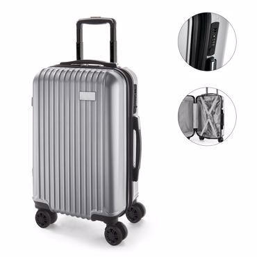 Trolley. ABS et PET. Intérieur rembourré, avec division. 4 doubles roues directionnelles. Poignée extensible en aluminium, avec bouton poussoir. Fermeture de sécurité avec code. Plaque métallique amovible pour personnalisation. Capacité jusqu'à 33 L. Poids: 2.70 kg. 335 x 540 x 225 mm | Plaque métallique: 60 x 30 mm