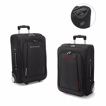 Trolley. 600D et EVA. Compartiment frontal semi-rigide. Intérieur doublé. Etiquette d'identification au dos. Poignée extensible en aluminium, et bouton poussoir. Capacité jusqu'à 28 L. Poids: 2.95 kg. 345 x 520 x 195 mm