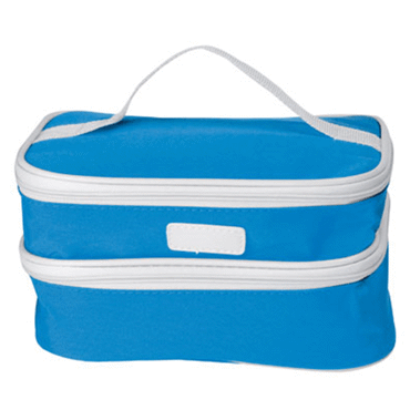 trousse de toilette en nylon dans laquelle tout est bien rangée grâce à ses compartiments. Votre publicité sera placé sur le label blanc.
