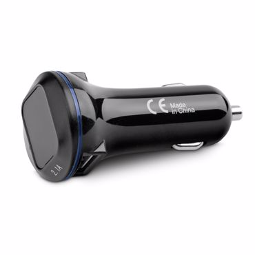 USB adaptateur pour voiture en plastique avec 2 sorties 5V/2'1A et 5V/1A et voltage d’entrée 12–24V. Approprié pour portables. Approprié aux étiquettes 3D. ø35 x 72 mm
