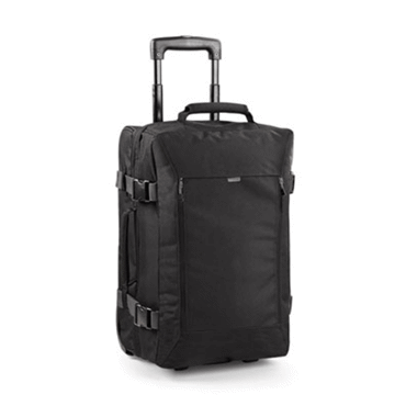 Etiquette retirable pour faciliter le changement de marque. Compartiment double pour facilité le rangement. Poignée rétractable. Sangles de compression. Possiblité de fermer le compartiment central de façon sécurisé par insertion d'un petit cadenas (non fourni). Poignée de transport. Convient comme bagage cabine. surface d'impression 28 x 16 cm - 100 % polyester 600D.