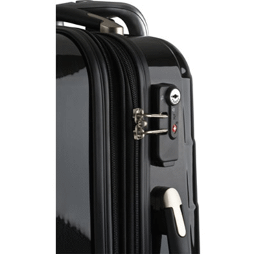 Valise trolley à coque rigide et roulettes pivotantes, poignée télescopique, double zip avec deux poignées renforcées flexibles. Cette valise trolley dispose d'un verrou de sécurité agréé TSA (cette agrément évite en cas de contrôle la destruction de la serrure par le service des douanes) Possibilité d'impression sur l'étiquette jusqu'à 4 couleurs.