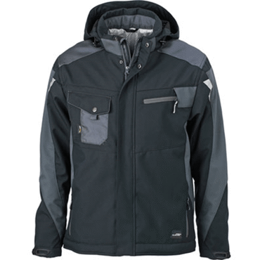 Veste softshell de travail homme. -Capuche doublée amovible avec cordon de serrage. -Fermeture zippée avec protege menton avec rabat velcro. -2 poches latérales avec zips contrastés. -2 poches poitrine et poche téléphone intérieure. -Empiècements en CORDURA. -Inserts réfléchissants. -Doublure dos limitant la déperdition de la chaleur.. -Manches réglables par velcro. -100 % polyester. -CORDURA® : Tissu de renfort pour vêtements de travail. -Membrane technique TPU, respirant,coupe vent et imperméable. -2 000 mm de colonne d'eau et 2 000 gr d'évaporation en 24h. -