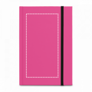 Bloc-notes A5 à couverture rigide fluorescente en PU.Avec 192 pages lignées blanches et contours noir, ruban marque-page et élastique. 140 x 210 mm The additional information presented is indicative and may vary