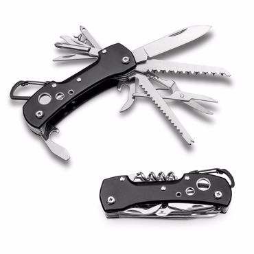 Canif en acier inoxydable. Avec 12 pièces. Livré sous boîte. Sachet individuel, Boîte noir