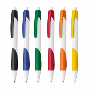 Stylo à bille avec clip et prise en main caoutchoutée.